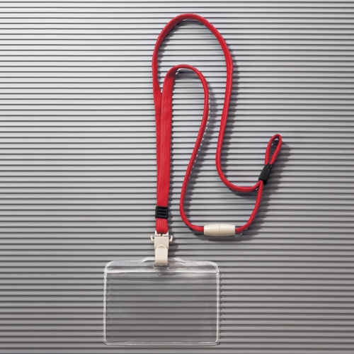 商品仕様 | ●ケースタイプ/ソフト ●色/レッド ●適応カードサイズ/タテ60×ヨコ95mm ●ひもサイズ/幅8mm×長さ約1m ●中紙/なし ●カード挿入方向/タテ入れ ●チャック/無 ●長さ調節/可 ●安全パーツ/有 ●材質/ホルダー:再生オレフィン樹脂、ストラップ:ペットボトル再生繊維 ●その他仕様/●ストラップ着脱機構付 ●セパレートパーツ・長さ調整パーツ・固定用クリップ ●平ひも ●ストラップ色/レッド(系) |