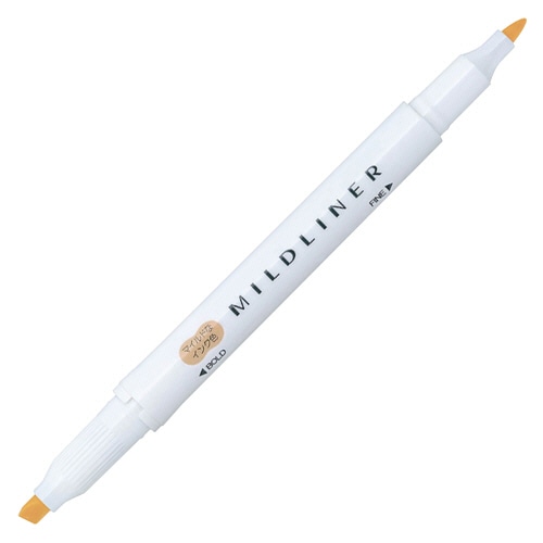 | 商品仕様 | ●タイプ/使い切りタイプ ●インク種類/水性顔料 ●インク色/マイルドオレンジ ●芯の太さ/太字、細字 ●芯形状/太字:角芯、細字:丸芯 ●線幅/太字:4.0mm、細字:1.0~1.4mm ●全長/141.5mm ●軸径/11.5mm ●重量/10.1g ●シリーズ名/マイルドライナー ●インクカラー/オレンジ(系) |