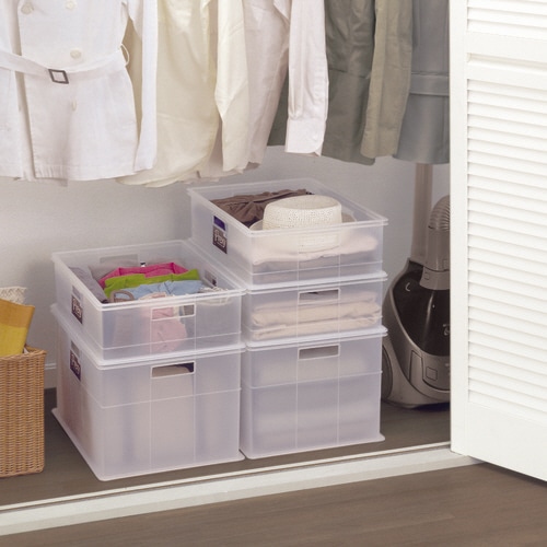 | 商品仕様 | ●サイズ/L ●容量/15L ●色/クリア ●外寸/W450×D350×H140mm ●内寸/W410×D310×H120mm ●許容内容物重量/2.7kg ●耐荷重/4kg ●最大積み重ね段数/6 ●材質/ポリプロピレン ●重量/700g ●シリーズ名/Prexy |