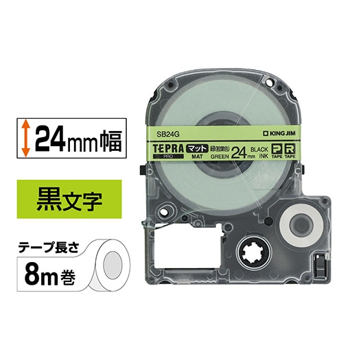 キングジム テプラ PRO テープカートリッジ マットラベル 24mm 緑(若葉色)/黒文字 SB24G 1個