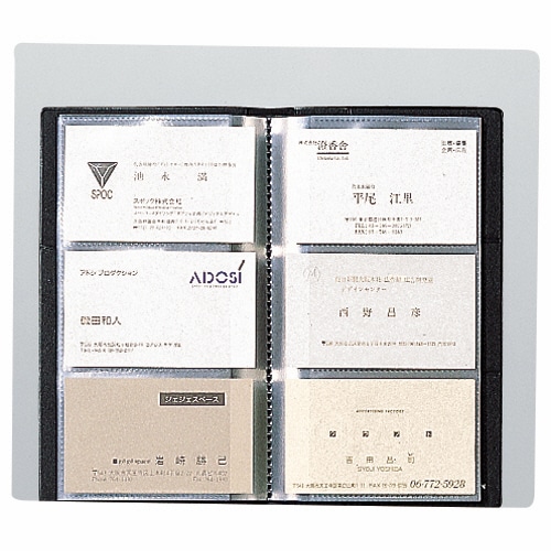 | 商品仕様 | ●固定式・差替式/固定式 ●色/ブルー ●寸法/W194×D108×H10mm ●収容枚数/84枚 ●収納タイプ/両面タイプ ●リフィル枚数/14枚 ●対応リフィル/M-84 ●材質/表紙:発泡ビニールシート ●付属品/背ラベル・インデックスシール付 ●その他仕様/●表紙:0.7mm厚(カバータイプ) ●備考/※1枚に名刺を3枚、両面収納で6枚収容できます。 |