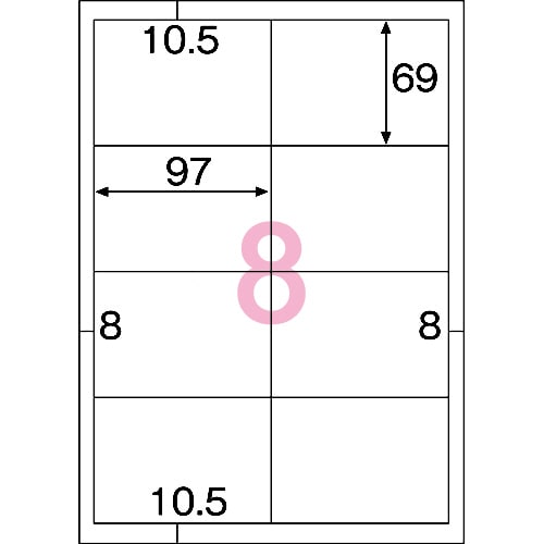 商品仕様 | ●サイズ/A4 ●シートサイズ/210×297mm ●ラベルサイズ/69×97mm ●面付け/8面 ●カット内容/四辺余白 ●総厚み/約0.15mm ●白色度/約120% ●備考/※モノクロコピー、モノクロレーザー、カラーコピー、カラーレーザーでは、厚紙モード・手差し給紙でお使いください。お使いの機種によっては対応しない場合がございます。 ※インクジェットでは、にじみが生じる場合がございます。 |