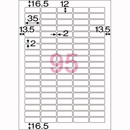商品仕様 | ●サイズ/A4 ●シートサイズ/210×297mm ●ラベルサイズ/12×35mm ●面付け/95面 ●カット内容/四辺余白(角丸) ●総厚み/約0.15mm ●白色度/約120% ●備考/※モノクロコピー、モノクロレーザー、カラーコピー、カラーレーザーでは、厚紙モード・手差し給紙でお使いください。お使いの機種によっては対応しない場合がございます。 ※インクジェットでは、にじみが生じる場合がございます。 |