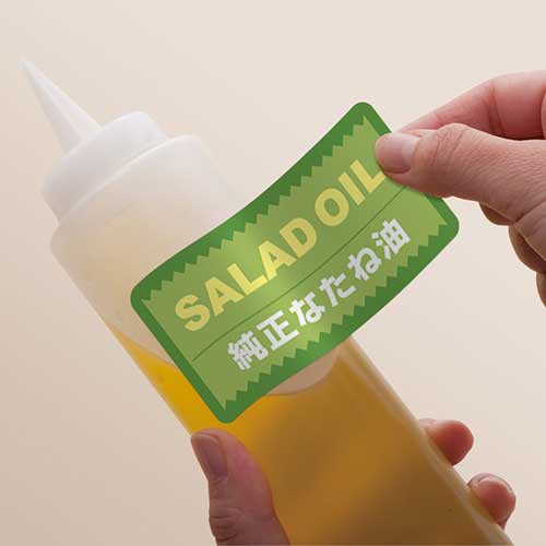 ●半光沢ホワイトフィルムの屋外用ラベル、油のついた面にも貼れるタイプ、12面です。