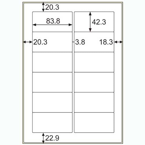 商品仕様 | ●サイズ/A4 ●ラベルサイズ/42.3×83.8mm ●面付け/12面 ●総厚み/0.23mm ●紙色/白 ●材質/PETフィルム ●水に強い/○ ●屋外用/○ ●その他仕様/●ざらざらした面にも貼れるタイプ ●備考/※お使いの機種によっては対応しない場合がございます。 |