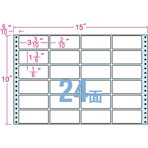 ●ドットプリンター用フォームラベル、タテ10インチ、4列24面(角丸)です。