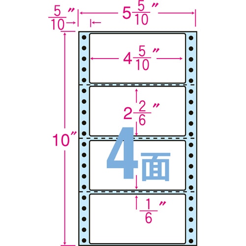 ●ドットプリンター用フォームラベル、1列4面・ミシン目入です。