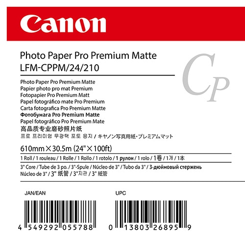 キヤノン 写真用紙・プレミアムマット 210g LFM-CPPM/24/210 24インチ610mm×30.5m 1109C003 1本