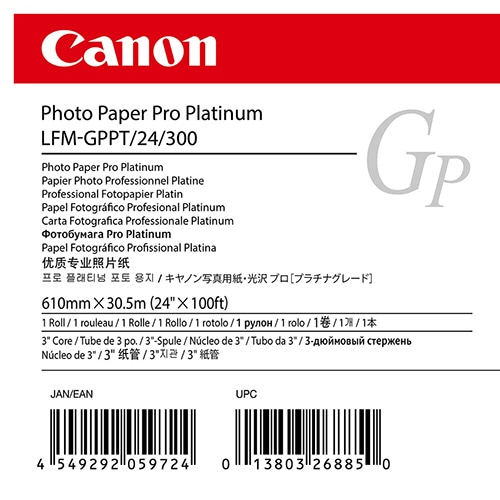 キヤノン 写真用紙・光沢 プロ[プラチナグレード] 300g LFM-GPPT/24 24インチ610mm×30.5m 1107C003 1本