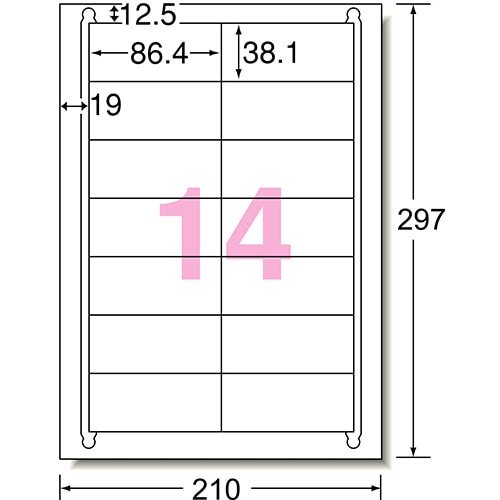 エーワン ラベルシール[レーザープリンタ] マット紙・ホワイト A4 14面 86.4×38.1mm 四辺余白付 65214 1冊(20シート)