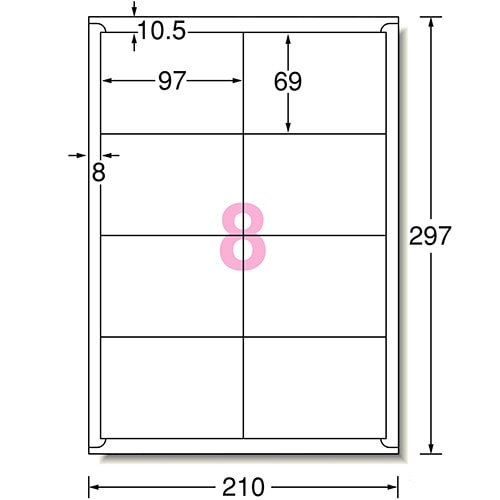 ●マット紙仕様のレーザープリンター用ラベルシール、8面四辺余白付、100シート入です。