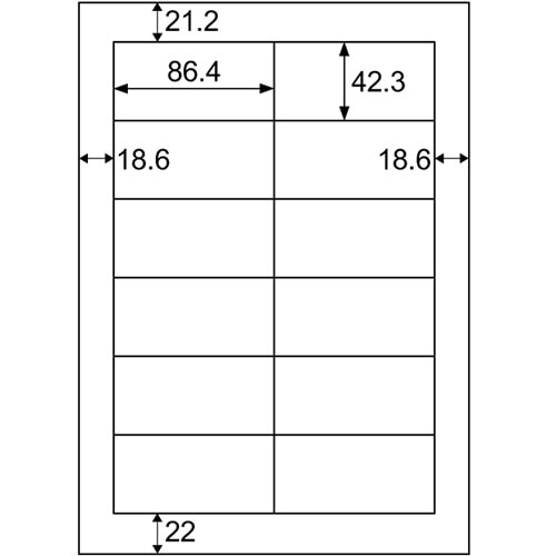 商品仕様 | ●サイズ/A4 ●シートサイズ/210×297mm ●ラベルサイズ/42.3×86.4mm ●面付け/12面 ●カット内容/四辺余白 ●総厚み/約0.15mm ●白色度/約120% ●備考/※モノクロコピー、モノクロレーザー、カラーコピー、カラーレーザーでは、厚紙モード・手差し給紙でお使いください。お使いの機種によっては対応しない場合がございます。 ※インクジェットでは、にじみが生じる場合がございます。 |