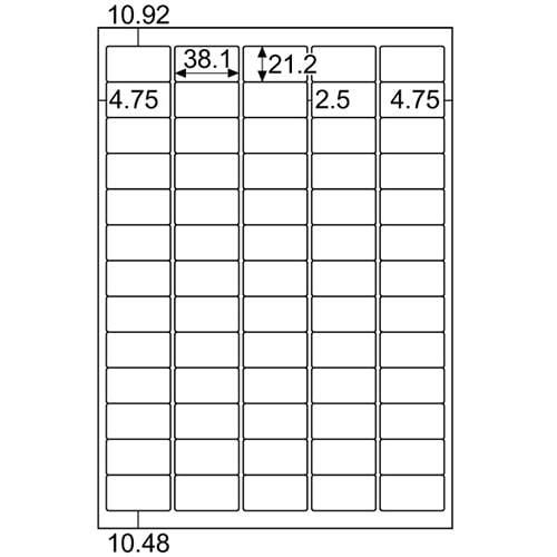 商品仕様 | ●サイズ/A4 ●シートサイズ/210×297mm ●ラベルサイズ/21.2×38.1mm ●面付け/65面 ●カット内容/四辺余白(角丸) ●総厚み/約0.15mm ●白色度/約120% ●備考/※モノクロコピー、モノクロレーザー、カラーコピー、カラーレーザーでは、厚紙モード・手差し給紙でお使いください。お使いの機種によっては対応しない場合がございます。 ※インクジェットでは、にじみが生じる場合がございます。 |