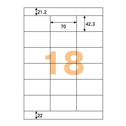 商品仕様 | ●サイズ/A4 ●シートサイズ/210×297mm ●ラベルサイズ/42.3×70mm ●面付け/18面 ●カット内容/上下余白 ●総厚み/約0.15mm ●白色度/約120% ●備考/※モノクロコピー、モノクロレーザー、カラーコピー、カラーレーザーでは、厚紙モード・手差し給紙でお使いください。お使いの機種によっては対応しない場合がございます。 ※インクジェットでは、にじみが生じる場合がございます。 |