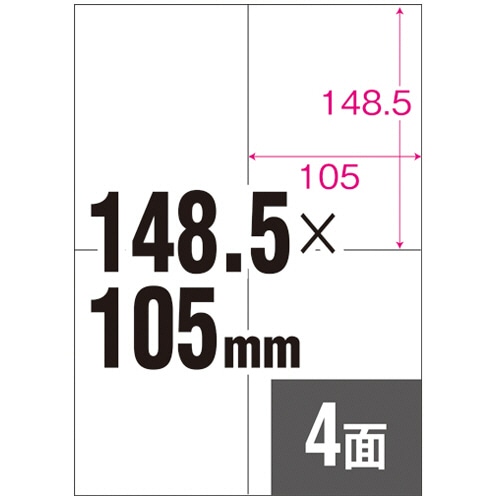 商品仕様 | ●サイズ/A4 ●シートサイズ/210×297mm ●ラベルサイズ/105×148.5mm ●面付け/4面 ●紙質/上質紙 ●総厚み/約0.19mm ●白色度/約103% ●再剥離/○ ●備考/※カラーコピー・カラーレーザープリンタは厚紙モード・手差し給紙でお使いください。お使いの機種によっては対応しない場合がございます。 ※インクジェットプリンタはにじみが生じる場合がございます。 |