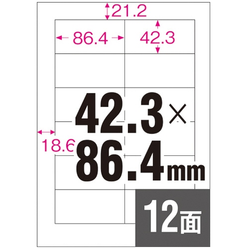 商品仕様 | ●サイズ/A4 ●シートサイズ/210×297mm ●ラベルサイズ/42.3×86.4mm ●面付け/12面 ●カット内容/四辺余白 ●紙質/上質紙 ●総厚み/約0.19mm ●白色度/約103% ●再剥離/○ ●備考/※カラーコピー・カラーレーザープリンタは厚紙モード・手差し給紙でお使いください。お使いの機種によっては対応しない場合がございます。 ※インクジェットプリンタはにじみが生じる場合がございます。 |