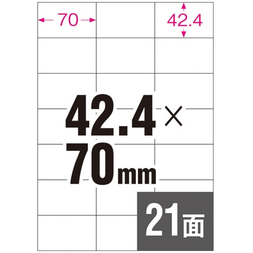 商品仕様 | ●サイズ/A4 ●シートサイズ/210×297mm ●ラベルサイズ/42.4×70mm ●面付け/21面 ●紙質/上質紙 ●総厚み/約0.19mm ●白色度/約103% ●再剥離/○ ●備考/※カラーコピー・カラーレーザープリンタは厚紙モード・手差し給紙でお使いください。お使いの機種によっては対応しない場合がございます。 ※インクジェットプリンタはにじみが生じる場合がございます。 |