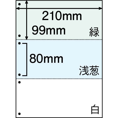 TANOSEE マルチプリンタ帳票(FSC) A4 緑・浅葱・白 3面6穴 1箱(500枚)