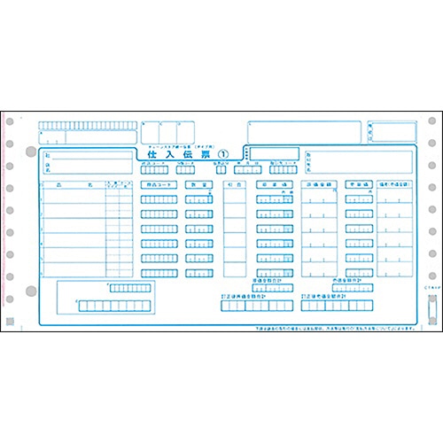 商品仕様 | ●様式/チェーンストア統一伝票(タイプ用 伝票番号なし) ●用紙タイプ/連続 ●サイズ/10×5インチ ●刷色/1P:青、2P:緑、3P:灰、4P:茶、5P:紫 ●複写枚数/5枚 ●複写内訳/1P:仕入伝票1、2P:仕入伝票2、3P:仕入伝票3、4P:物品受領書、5P:納品書(控) |