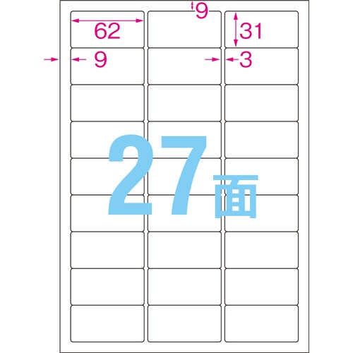 エーワン ラベルシール[インクジェット] 超耐水光沢フィルム・透明(やや乳白色) A4 27面 62×31mm 四辺余白付 角丸 30627 1冊(3シート)