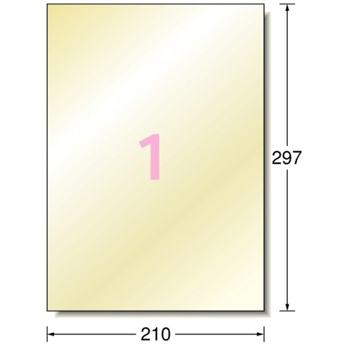 商品仕様 | ●サイズ/A4 ●シートサイズ/210×297mm ●ラベルサイズ/210×297mm ●面付け/ノーカット ●紙質/光沢フィルム ●ラベルの厚み/0.1mm ●総厚み/0.15mm ●紙色/ゴールド ●材質/ポリエステルフィルム+インクジェット専用塗工 ●水に強い/○ ●その他仕様/●超耐水 ●備考/※顔料インクの場合、インクの乾燥には時間がかかります。 |