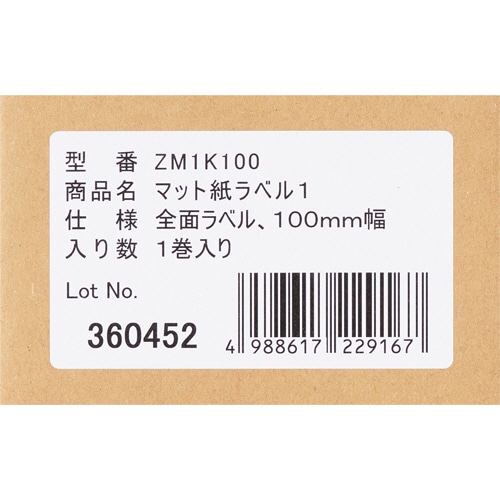 エプソン マット紙ラベル1 全面ラベル ラベルサイズ100mm幅 約43m ZM1K100 1巻