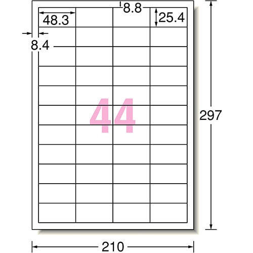 エーワン スーパーエコノミーシリーズ プリンタ用ラベル A4 44面 48.3×25.4mm 四辺余白付 L44AM500N 1箱(500シート)