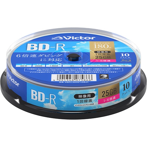 JVC 録画用BD-R 130分 1-6倍速 ホワイトワイドプリンタブル スピンドルケース VBR130RP10SJ1 1パック(10枚)