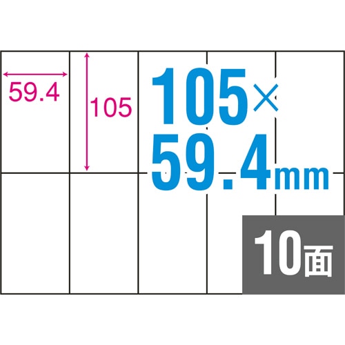 | 商品仕様 | ●サイズ/A4 ●シートサイズ/210×297mm ●ラベルサイズ/59.4×105mm ●面付け/10面 ●紙質/上質紙 ●総厚み/約0.15mm ●白色度/約120% ●備考/※コピー、レーザーは厚紙モード・手差し給紙でお使いください。機種によっては対応しない場合がございます。 ※インクジェットはにじみが生じる場合がございます。 |