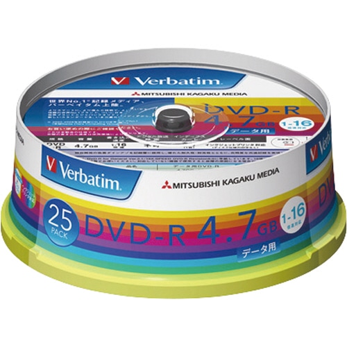 バーベイタム データ用DVD-R 4.7GB 1-16倍速 ホワイトワイドプリンタブル スピンドルケース DHR47JP25V1 1パック(25枚)