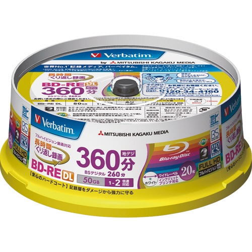バーベイタム 録画用BD-RE DL 260分 1-2倍速 ホワイトワイドプリンタブル スピンドルケース VBE260NP20SV1 1パック(20枚)