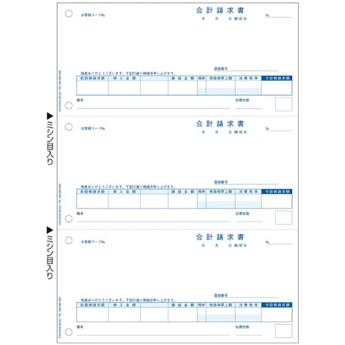 ●軽減税率に対応した、インボイスタイプの合計請求書。A4 3面、6穴、500枚です。