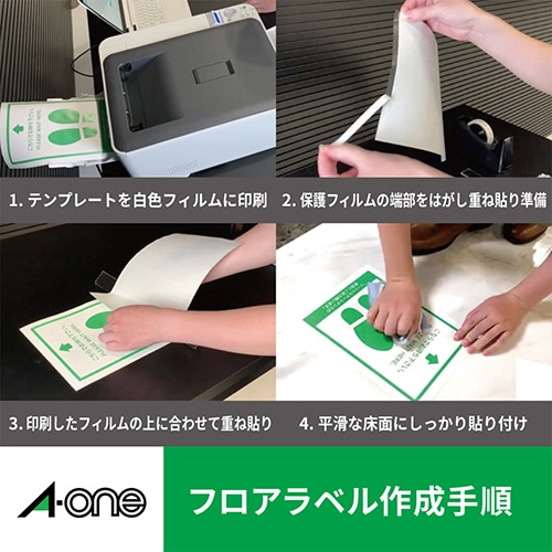 エーワン 屋外でも使えるサインラベルシール[レーザープリンタ] フロア用 保護カバー付 光沢フィルム・ホワイト A4 ノーカット 31091 1冊(各6シート)