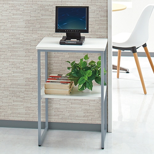 ●幅500mmで電話機台にも消毒液を置く棚にも使用できるホワイトの電話台。