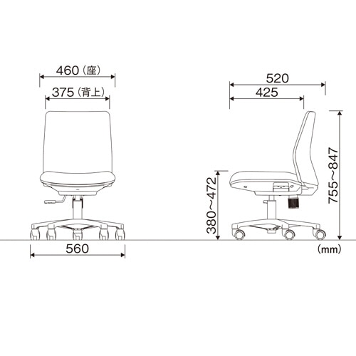 小柄な方もしっかり座れる座高380mm~のコンパクトチェア。