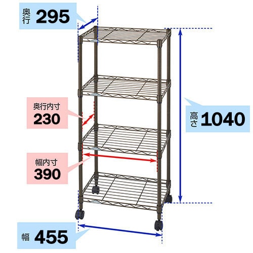 ●幅455mm、高さ1040mmのブラウンの4段カラーラック
