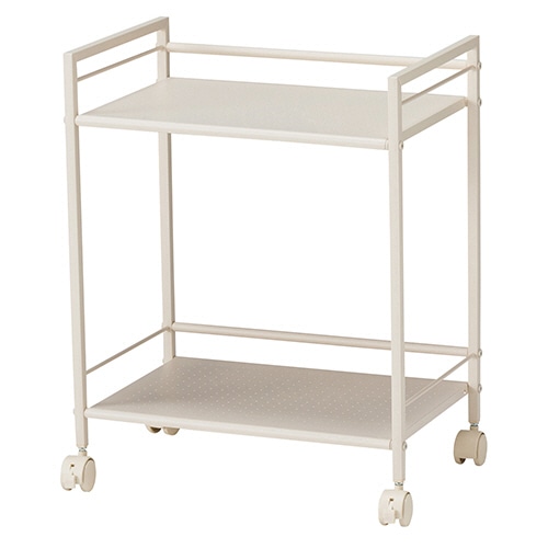 | 商品仕様 | ●外寸/W430×D295×H540mm ●重量/2.25kg ●色/アイボリー ●段数/2段 ●耐荷重/各段:約6kg、全体:約12kg ●材質/本体:スチール(紛体塗装)、キャスター:ポリプロピレン ●脚部仕様(キャスター/アジャスター)/キャスター(ストッパー付2個) ●製造国/台湾 ●付属品/六角レンチ |