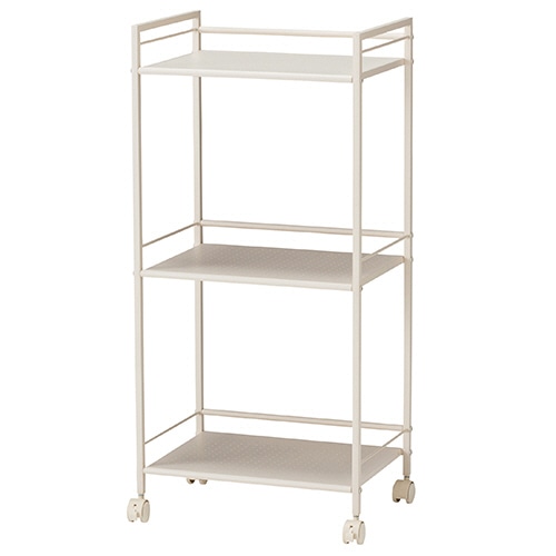 ●スタイリッシュな丸いパンチング加工の3段、アイボリーのワゴン。