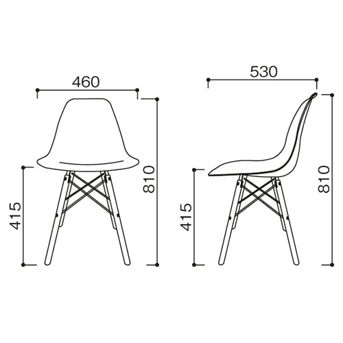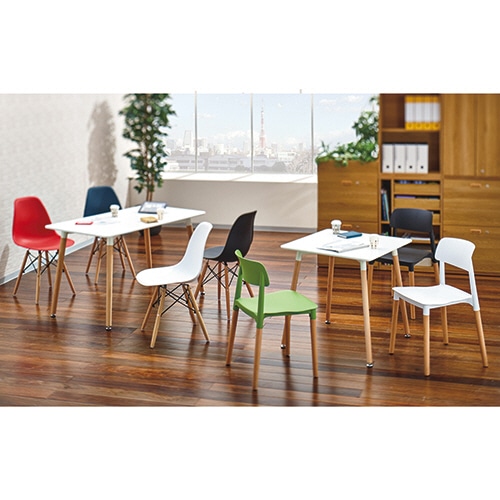 | 商品仕様 | ●座面張地タイプ/樹脂 ●寸法/W460×D530×H810mm ●重量/約3.3kg ●色/ブラック ●座面高さ/415mm ●材質/背座:ポリプロピレン、脚:天然木(ブナ)ラッカー塗装、フレーム:スチール(エポキシ樹脂塗装) ●肘掛け/なし ●製造国/中国 ●付属品/六角レンチ |