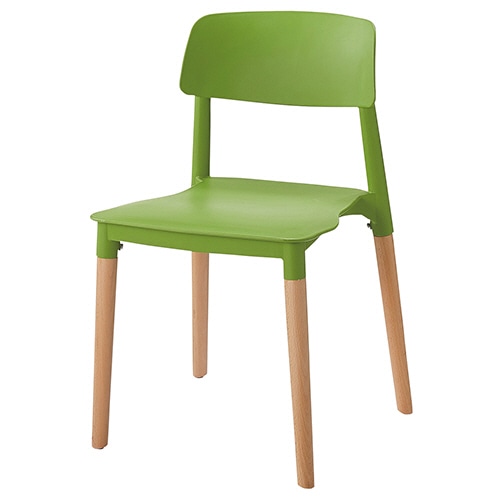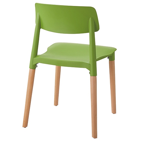 座と背が樹脂製の、インテリア性の高いチェア。脚部は天然木使用。