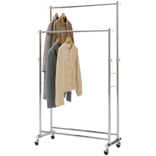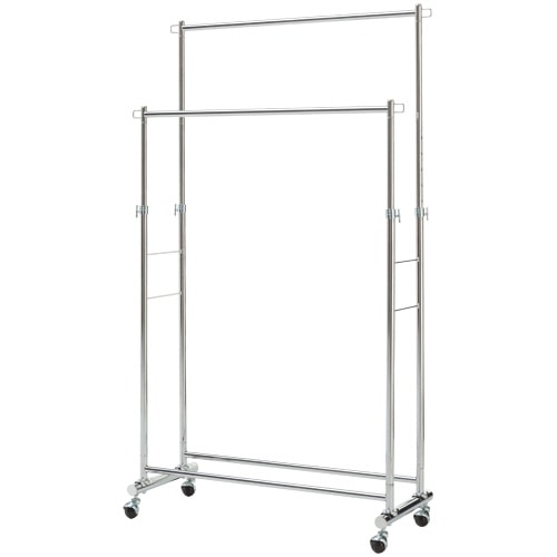 | 商品仕様 | ●寸法/W960×D415×H1045~1600mm ●重量/5.8kg ●色/クロム ●耐荷重/全体:約80kg ●材質/本体:スチール(クロームメッキ)、キャスター:PP ●脚部仕様(キャスター/アジャスター)/キャスター(ストッパーなし) ●製造国/台湾 ●付属品/六角レンチ、スパナ ●その他仕様/●タイプ:ダブル |