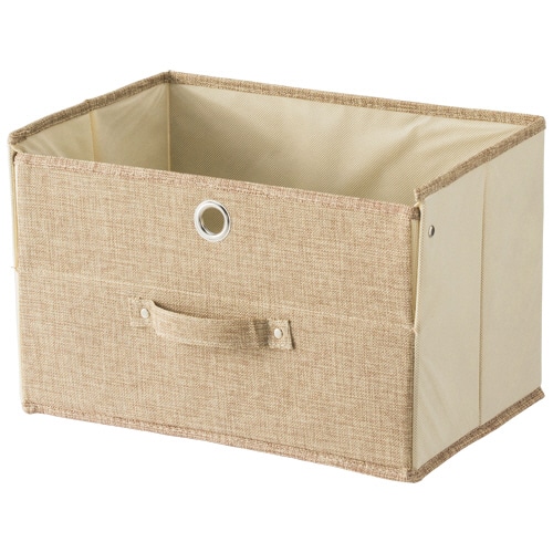 | 商品仕様 | ●寸法/W380×D250×H250mm ●色/ライトブラウン ●材質/本体:ポリエステル・PP不織布、芯材:紙、フタ:ポリエチレン、リベット・ハトメリング:銅 ●製造国/中国 |