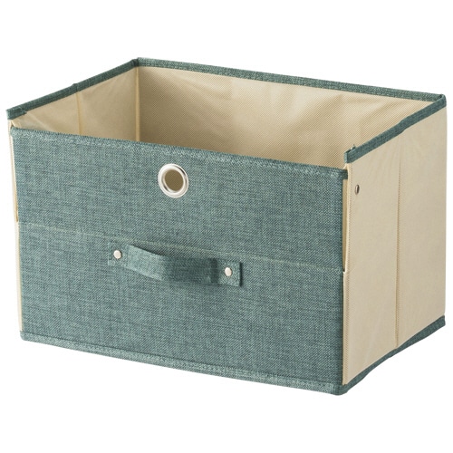 | 商品仕様 | ●寸法/W380×D250×H250mm ●色/ティールブルー ●材質/本体:ポリエステル・PP不織布、芯材:紙、フタ:ポリエチレン、リベット・ハトメリング:銅 ●製造国/中国 |