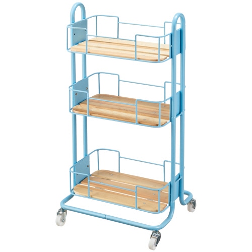 | 商品仕様 | ●寸法/W475×D380×H905mm ●重量/8kg ●色/スカイブルー ●材質/本体:スチール(エポキシ樹脂塗装)、棚板:天然木 ●脚部仕様(キャスター/アジャスター)/キャスター ●必要工具/プラスドライバー ●製造国/中国 ●付属品/スパナ ●その他仕様/●1棚あたりの内寸法:W415×D265×H90mm ●耐荷重:約45kg(全体)、約15kg(1段あたり) |