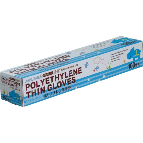| 商品仕様 | ●仕様/未滅菌 ●材質/低密度ポリエチレン ●サイズ/L:全長280×手のひら幅150×中指長さ84mm ●厚さ/約0.025mm ●食品衛生法適合 ●1箱=100枚入 |