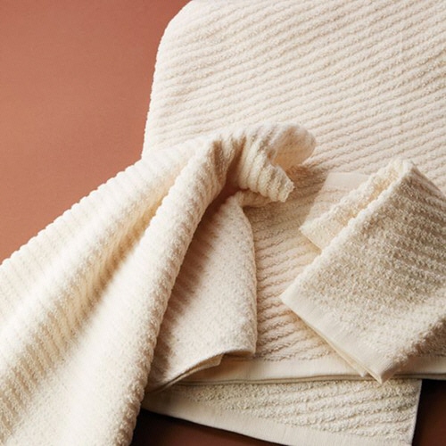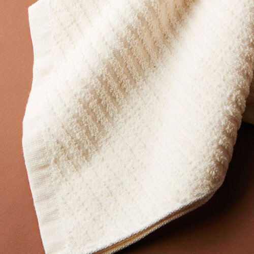 ●吸水性、毛羽落ち、色落ちなどが高いレベルで保証され、安心して使用することができる畦織りフェイスタオル。