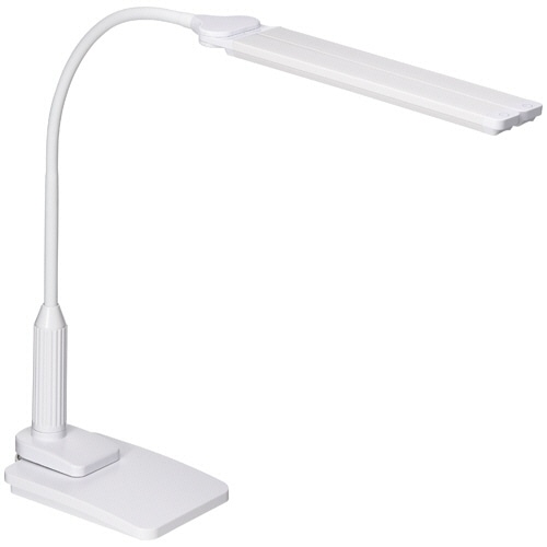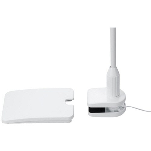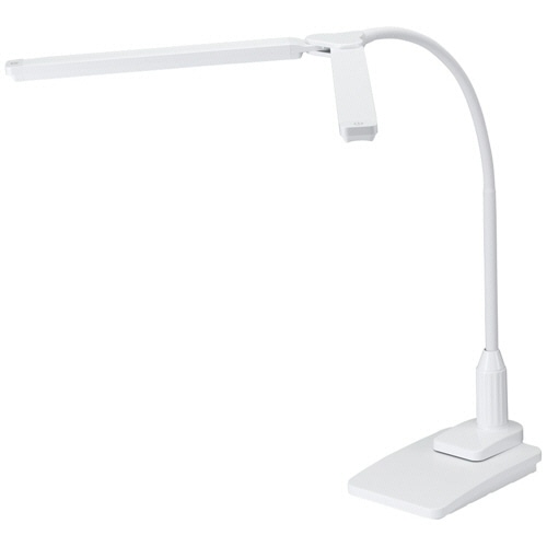 | 商品仕様 | ●寸法/ヘッド:約W60×H15×D275mm、アーム長:約540mm、ベース:約W125×H24×D180mm ●重量/870g ●色/ホワイト ●タイプ/スタンド式・クランプ式 ●全光束/830lm ●直下照度/3100lx(中心) ●色温度/6000K ●調光機能/各3段階 ●定格寿命/約25000時間 ●光源/LED2灯 ●クランプ幅/約15~40mm ●消費電力/13.2W ●その他仕様/●演色性:Ra85 ●JIS AA形相当 ●保証期間/1年 |