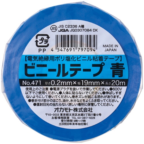 オカモト ビニールテープ No.471 19mm×20m 青 1巻