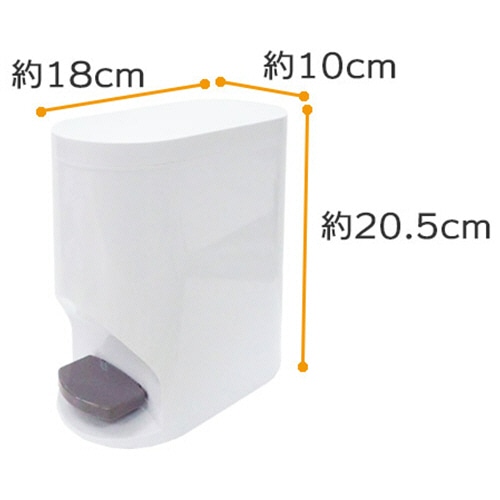 商品仕様 | ●寸法/W約10×D18×H20.5cm ●色/ホワイト ●材質/本体・フタ・ペダル・中枠:ABS樹脂、ワイヤー:鋼 ●その他仕様/●生産国:中国 |