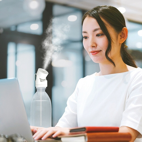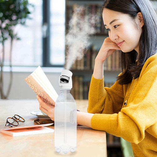 倒れても水がこぼれないペットボトル加湿器。